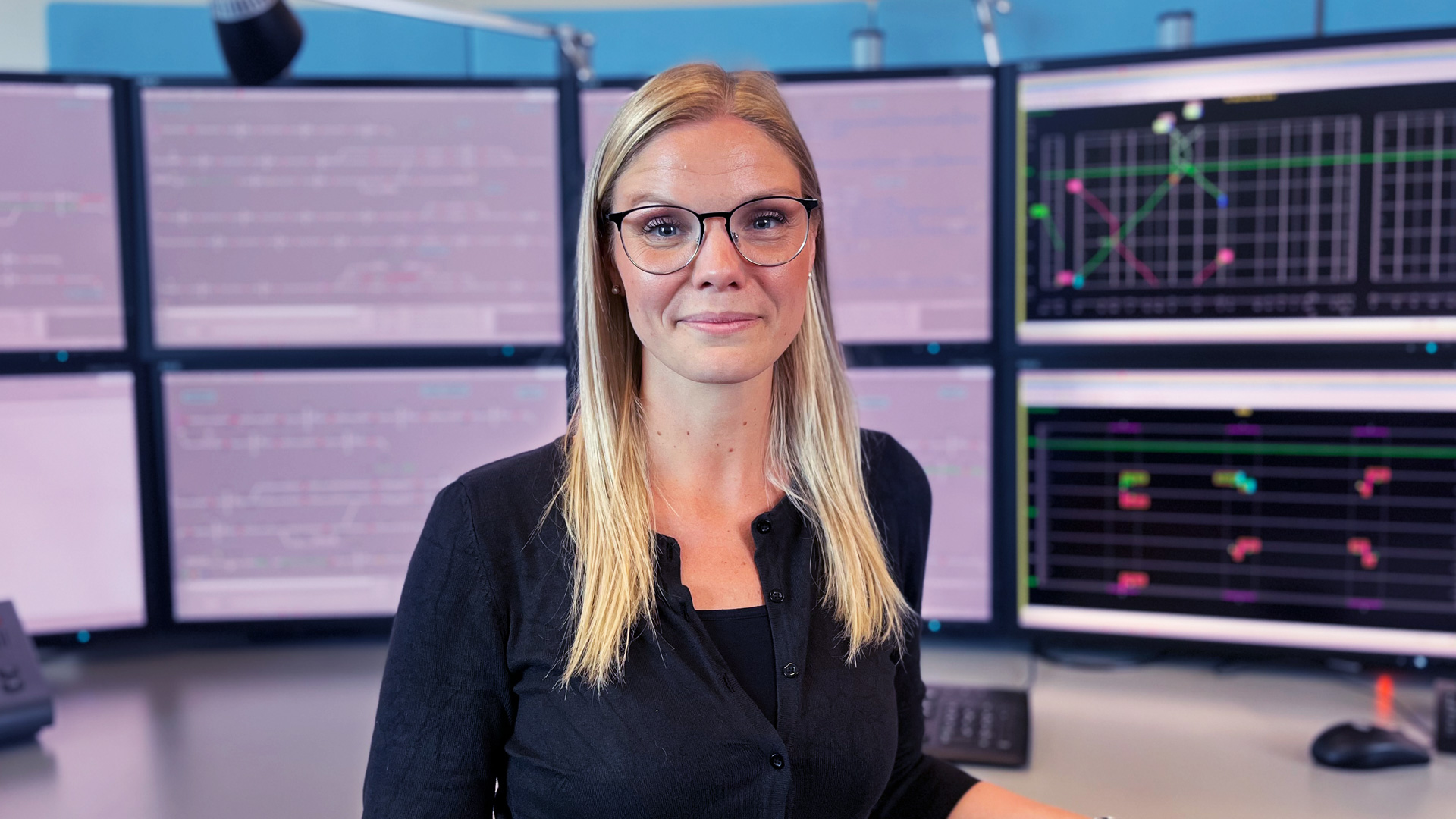 Jannie sidder i trafiktårn Vest i Fredericia og er en af de trafikledere, som får trafikken til at glide.