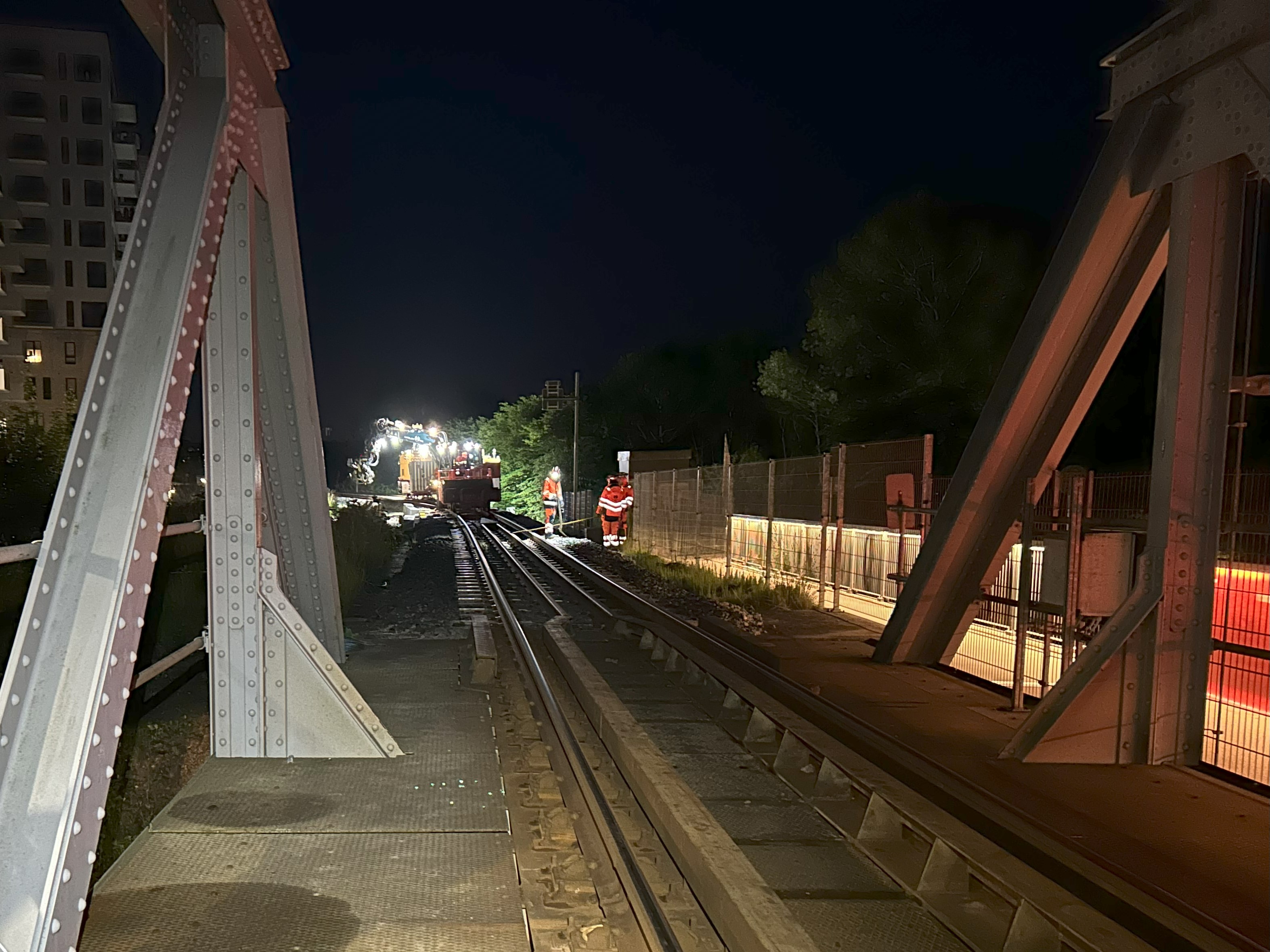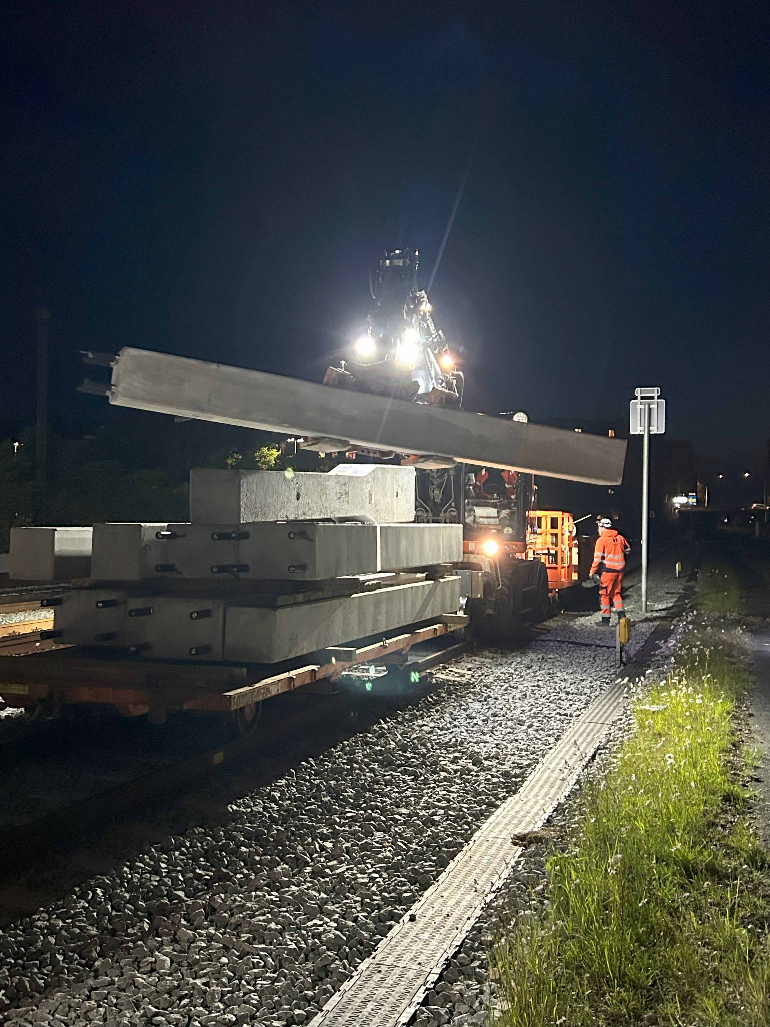 Elektrificeringen af banen udføres i aften- og nattetimerne for ikke at forstyrre togtrafikken i dagtimerne.