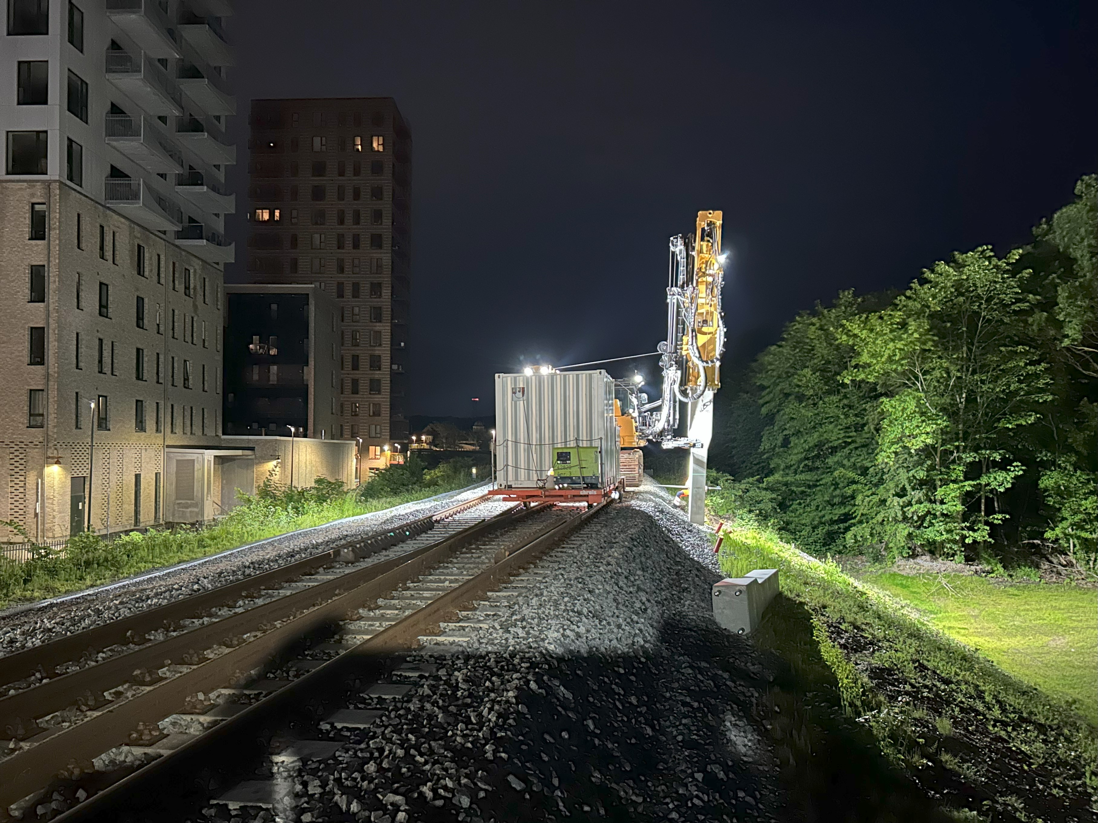 Hvis du er nabo til banen og elektrificeringsarbejdet, vil du kunne opleve, at vores arbejde i perioder er meget støjende og skaber vibrationer. Vi benytter store arbejdskøretøjer i sporet, og særligt vores rammemaskiner støjer og skaber vibrationer, når vi nedrammer betonfundamenter til kørestrømsmasterne. Du kan også opleve øget tung trafik til og fra vores arbejds- og byggepladser, hvis du bor i nærheden.