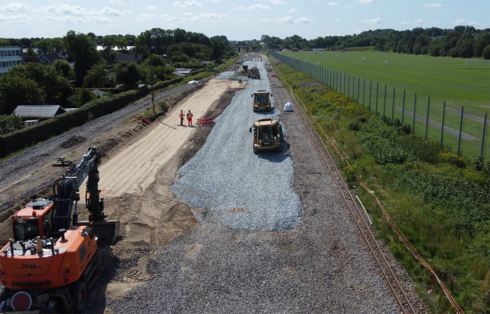 Der er fuld kraft på arbejdet med at bygge fremtidens grønne jernbane. Frem mod efteråret er der særlig fokus på den nordlige del af den jyske hovedstrækning, som er godt i gang med at blive fremtidssikret.
