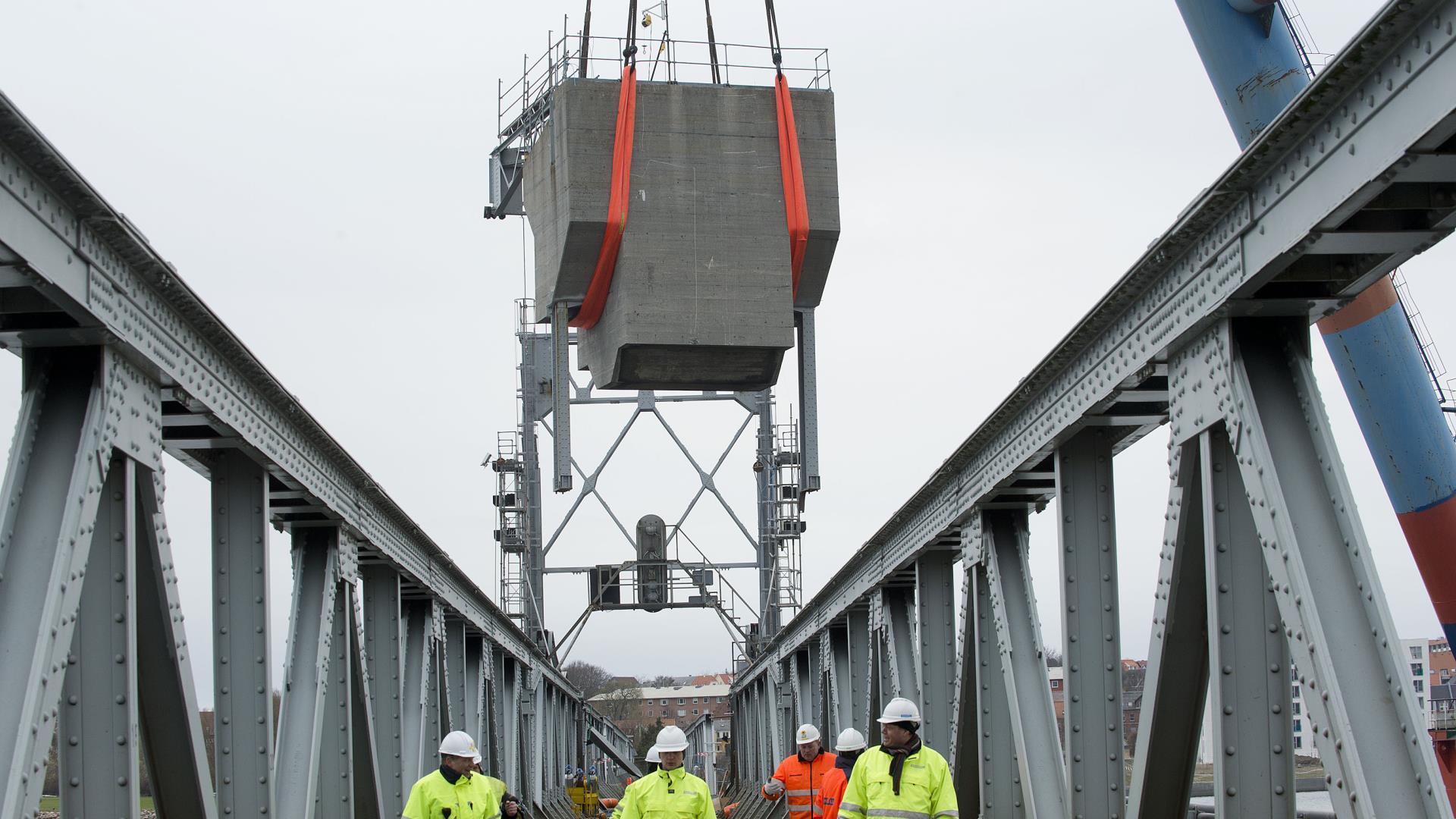 Broen vil blive løftet en smule, hvorefter de gamle lejer bliver fjernet og udskiftet med nye. Inden løftet bliver skinnerne skåret over, og når de nye lejer er på plads, bliver skinnerne svejset sammen igen.