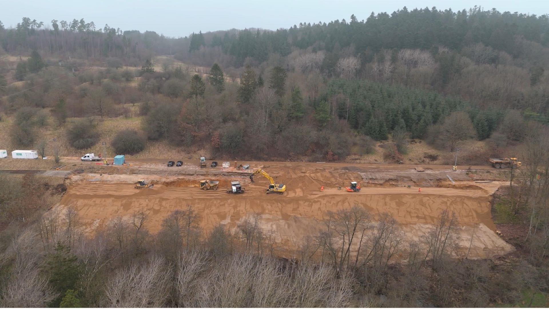 Siden den 14. januar 2025 har arbejdet med at anlægge den nye dæmning ved Funder Bakke været i fuld gang, og nu melder Banedanmark arbejdet færdigt. Det betyder, at der igen kan køre tog på strækningen. En uge før tid.