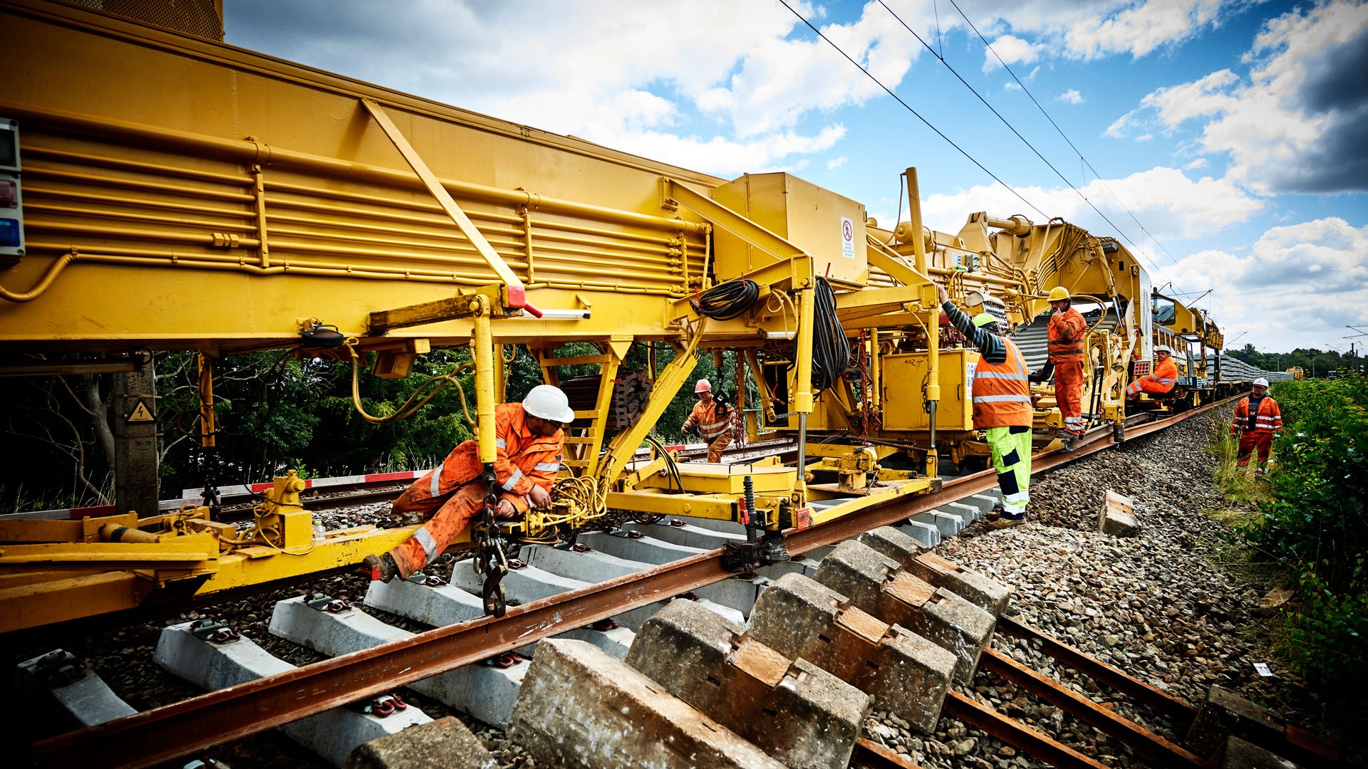 - Sporombygningstoget udskifter sveller og skinner i en arbejdsgang, hvilket forkorter den tid, en sporfornyelse tager.