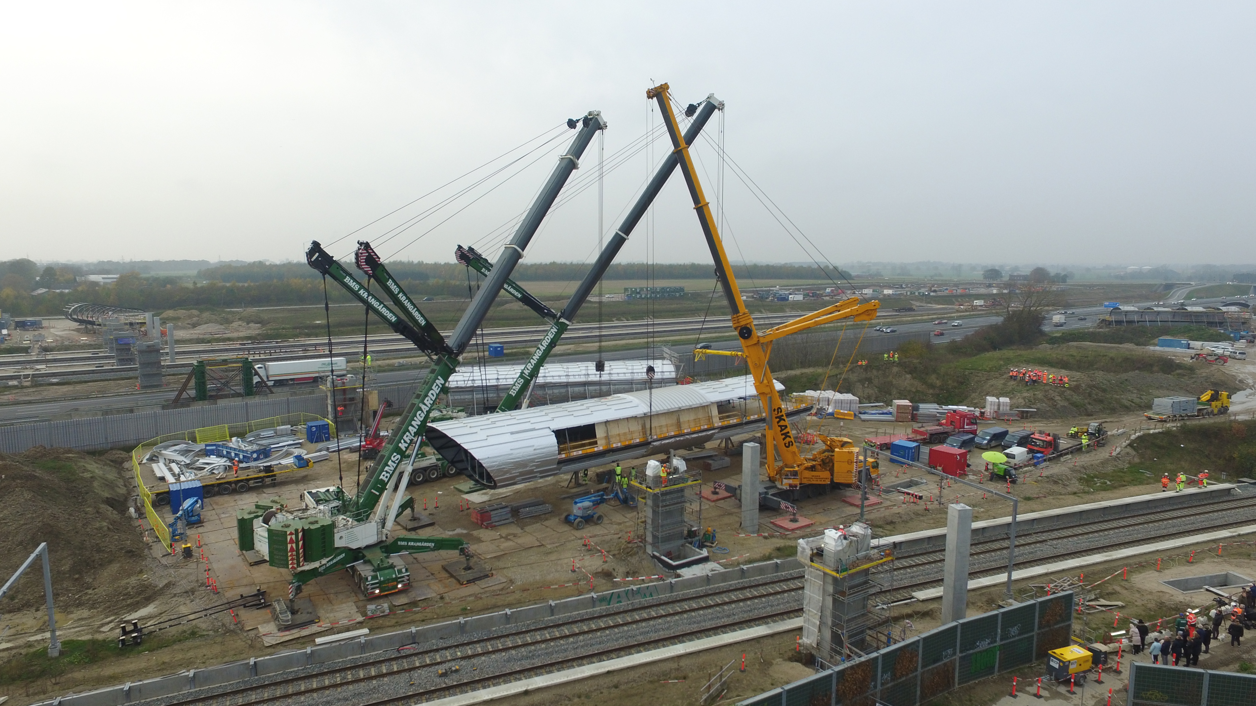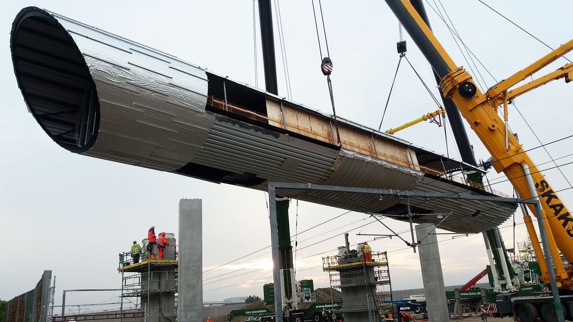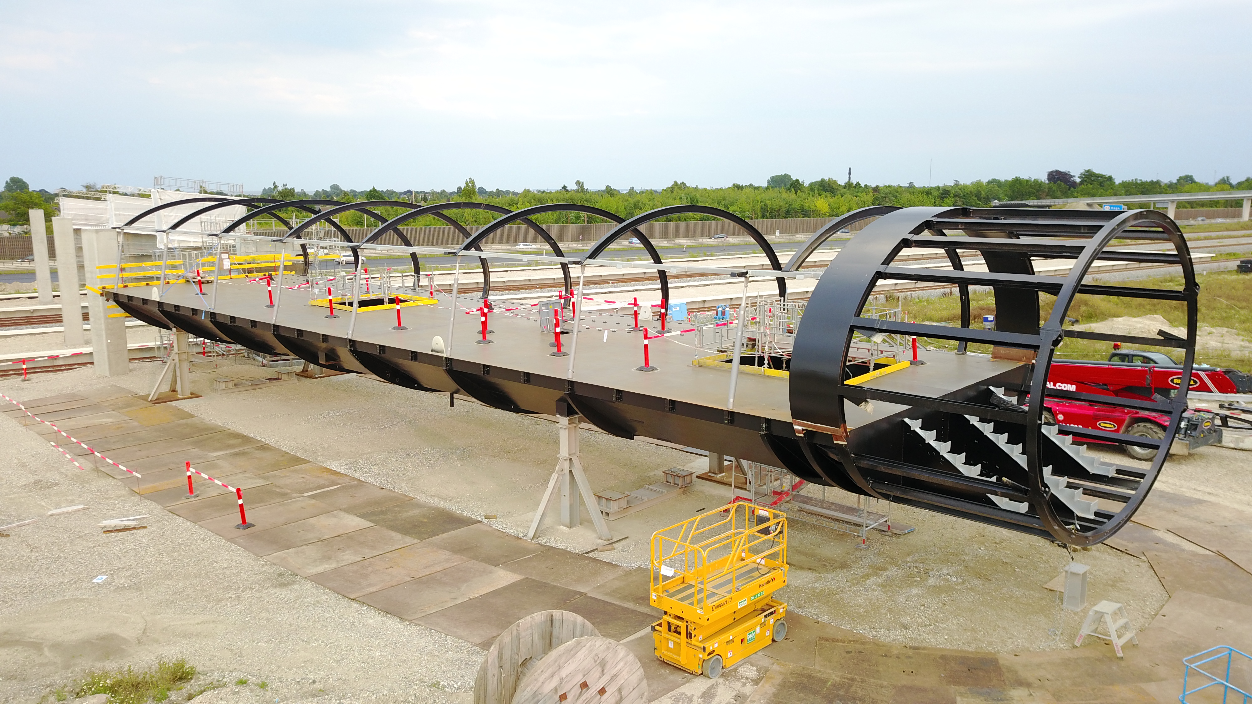 - Gangbroen består af i alt seks stålelementer, som i gennemsnit er 10 meter brede, 30-40 meter lange og måler knap 3 meter i højden. Samlet vejer broen ca. 150 tons.