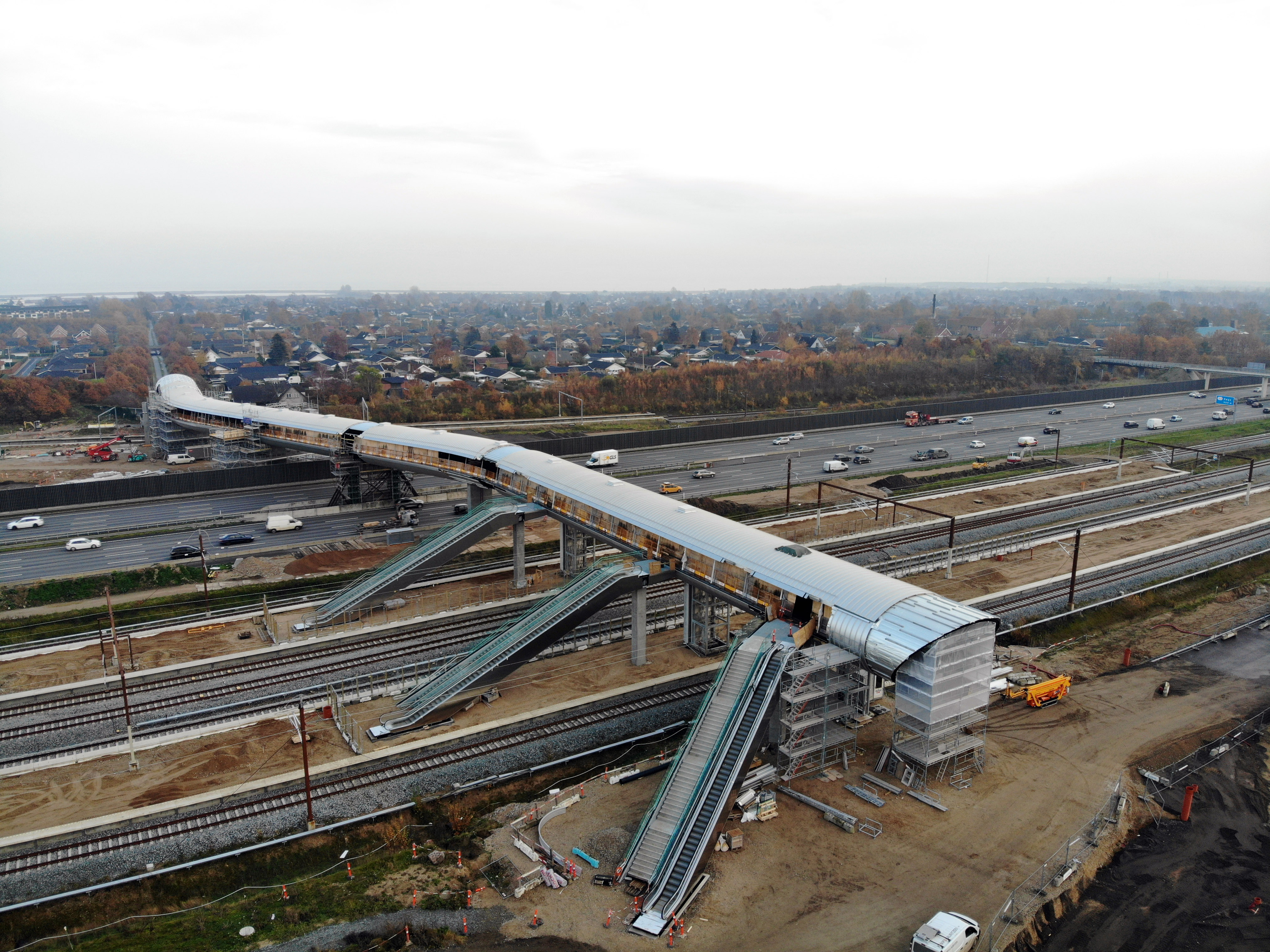 - Anlægget af Køge Nord Station omfatter en 225 meter lang gangbro med dertilhørende rulletrapper, trapper og elevatorer samt perroner på fjernbane og S-bane. Dertil bygges et stort parkér og rejs-anlæg ved stationen.