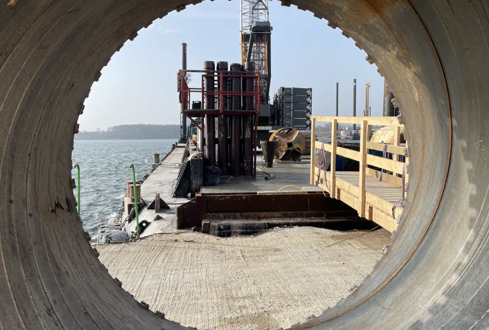 ”Bropillerne er som et isbjerg. Det er kun en lille del, vi ser over vandet. Det meste er under vandet. Vi har boret over 33 meter ned i havbunden heraf de sidste meter i kalk og kridt. Det er virkelig en milepæl, vi har nået,” fortæller Hans Christian Lollike.