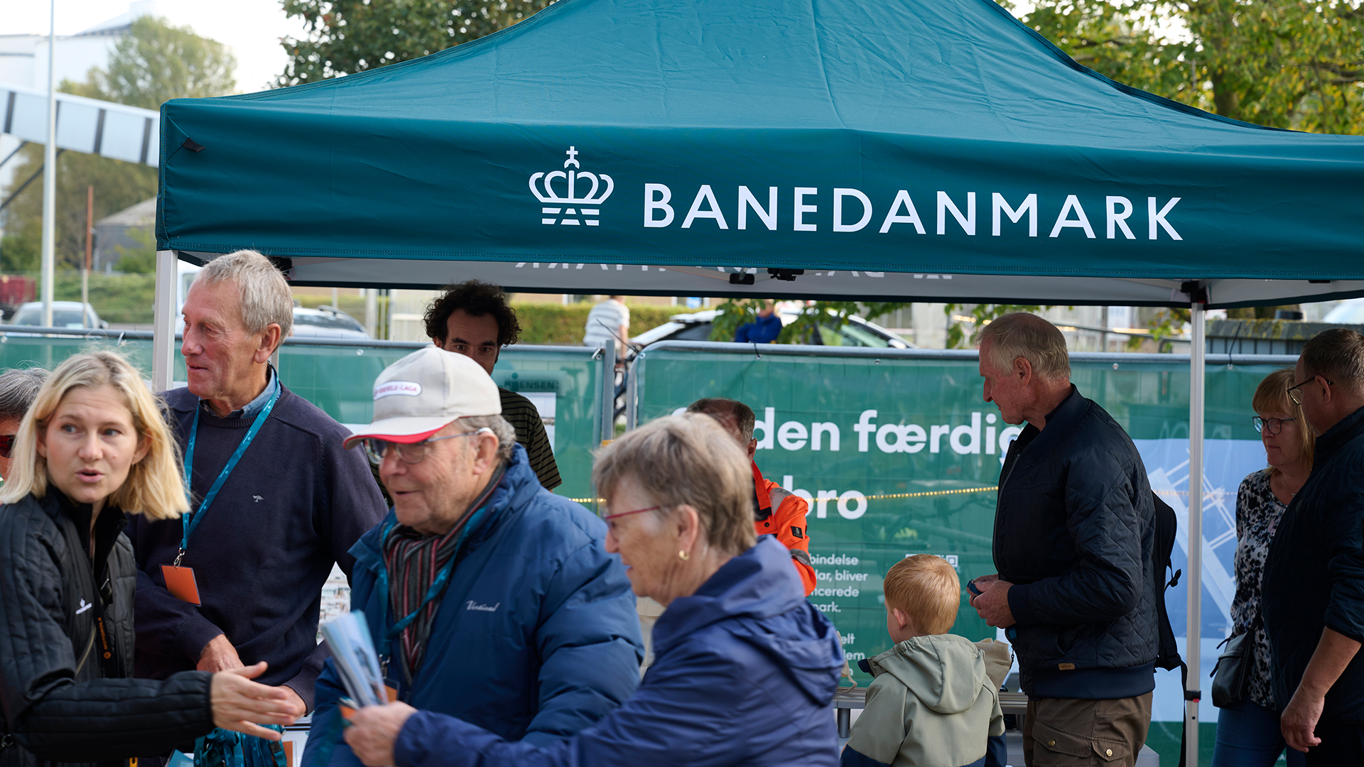 Her kunne gæsterne høre mere om projektet fra Banedanmark og MT Højgaards medarbejdere, der de seneste to år har arbejdet på forberedelserne til montering af den nye broklap og de øvrige 11 brofag, som er lokalt støbt på pladsen.