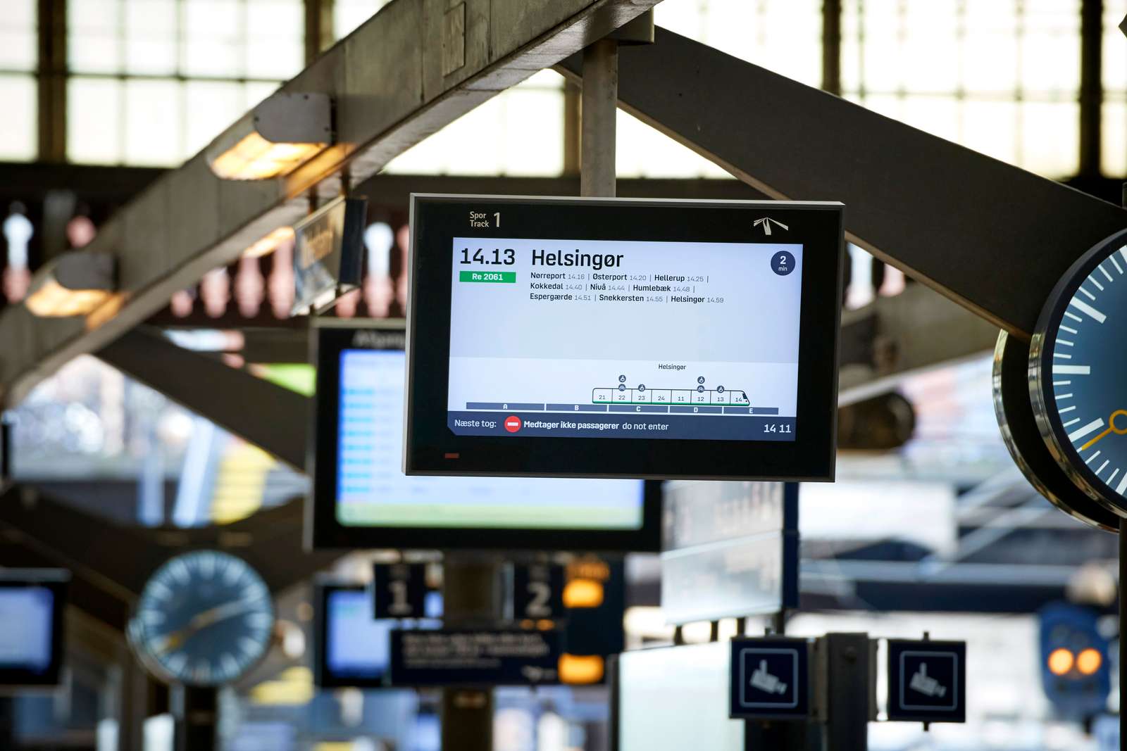 Er et tog forsinket, og vi ved, hvornår det kører til perron, kan man se det på skærmene på perronerne og stationerne.