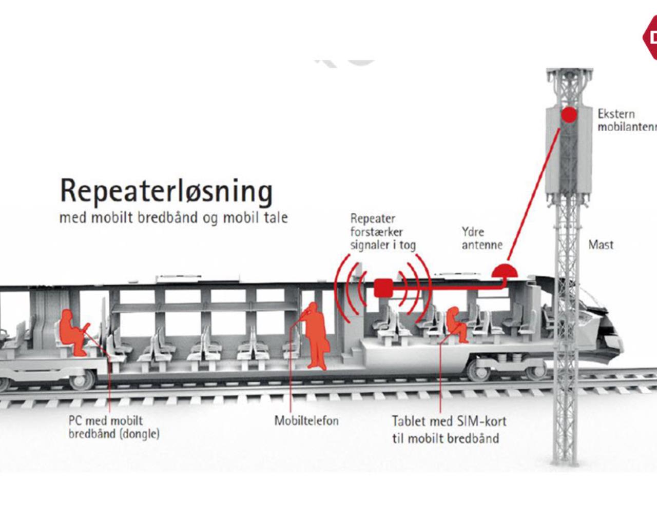 Banedanmark gennemfører sammen med togoperatørerne, Teleindustrien og mobilselskaberne projektet "Internet i Tog", som skal gøre toget til en fuldt funktionsdygtig arbejdsplads, og en væsentlig del af projektet er opsætningen af signalforstærkere, såkaldte repeatere, i DSB's fjern- og regionaltog